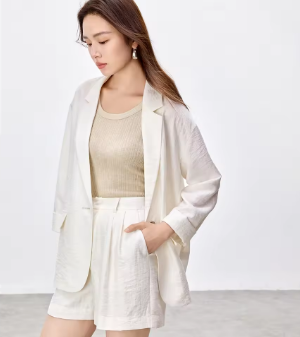 SENTUBILA Linen Blend Women's Two Pieces Set Notched Neck Single Button Blazers Straight Shorts New in Matching Sets 152Z59294