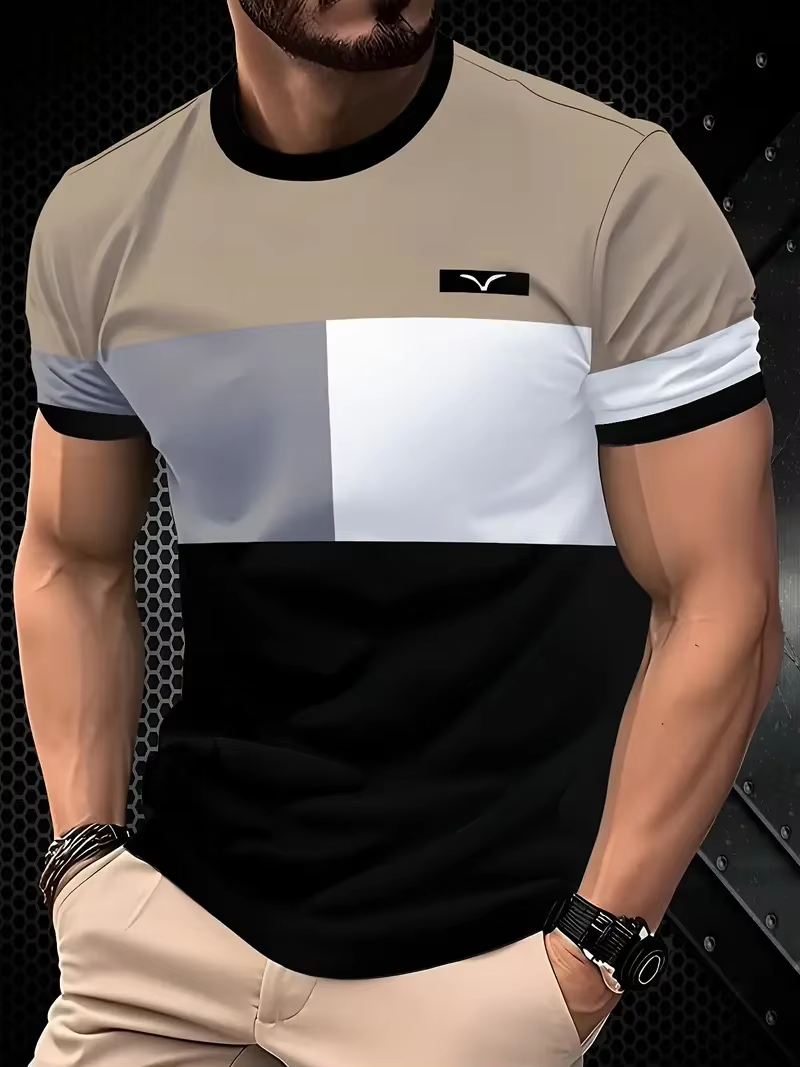Summer Classic Men's T-shirt Outdoor Round Neck Short Sleeve Top Stripe Print Street Loose T-Shirt Male Oversized Clothing