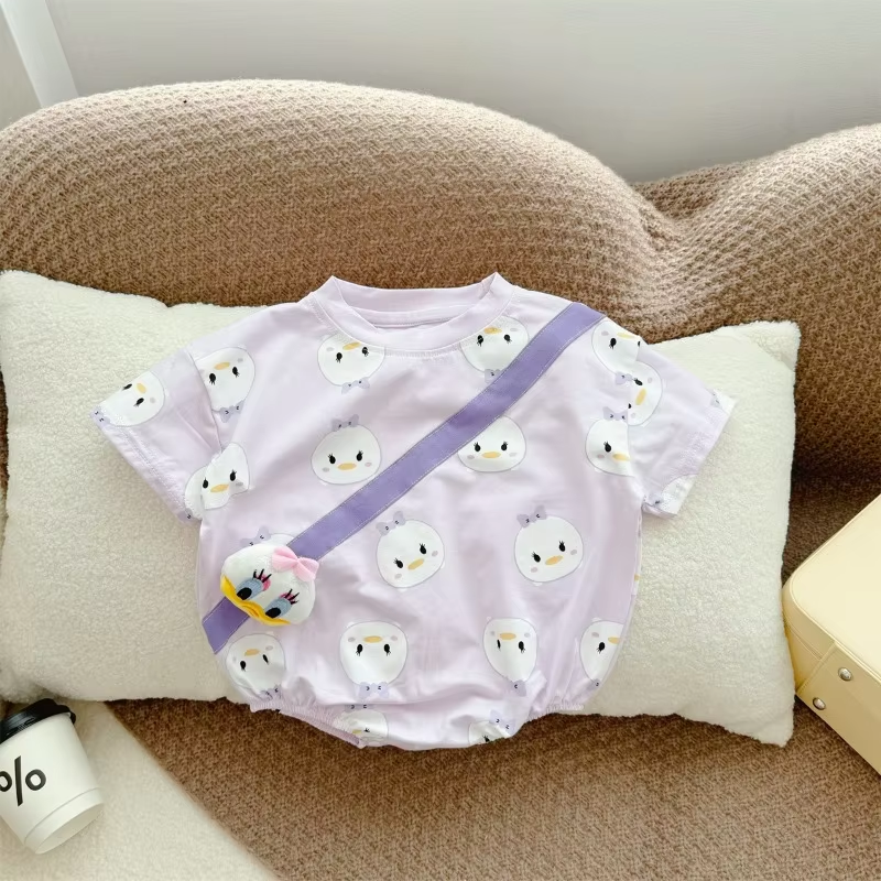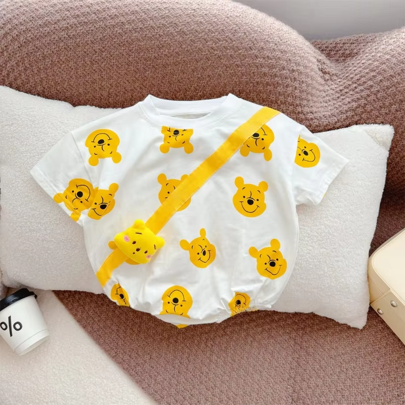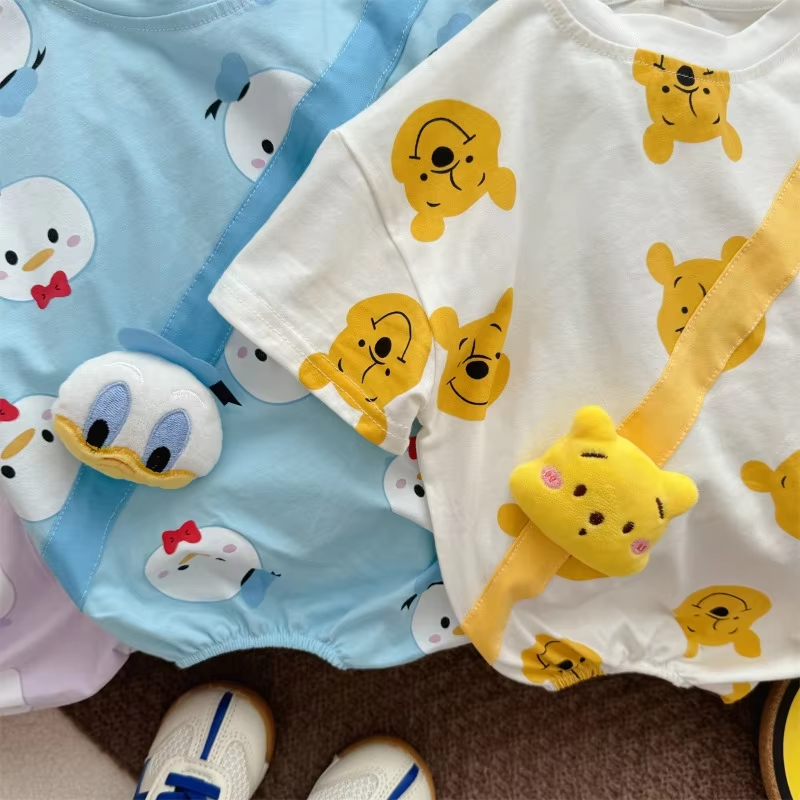 Summer Infant and Toddler Disney Cartoon 3pcs Sets O-neck Short Sleeve Bodysuit+Bucket Hat+Cute Socks Baby Boy Girl Clothes D625