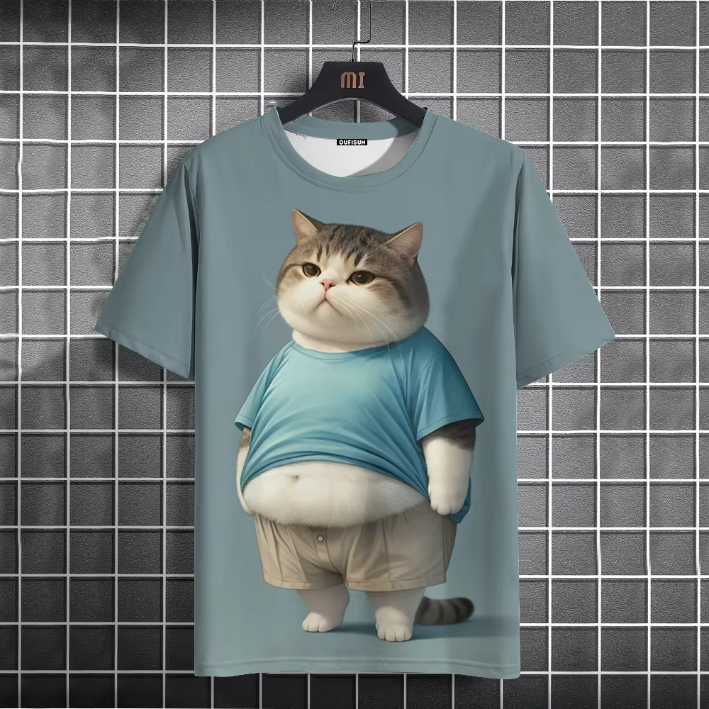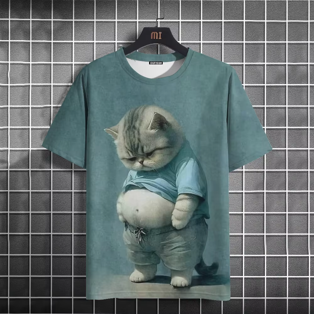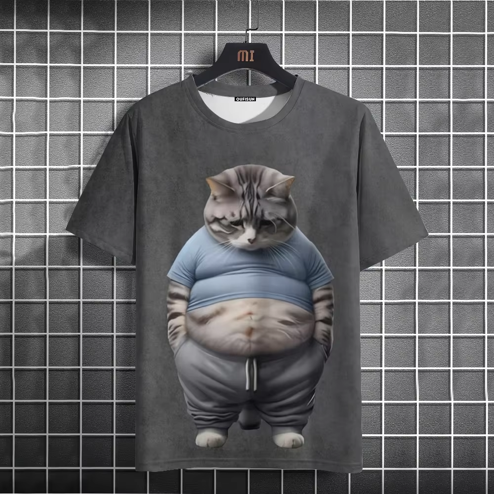 Summer Men's T-Shirt Funny Cat Print Oversized Short Sleeve Man T-Shirt Round Neck Casual Men Women Tee Neutral Clothing 2024