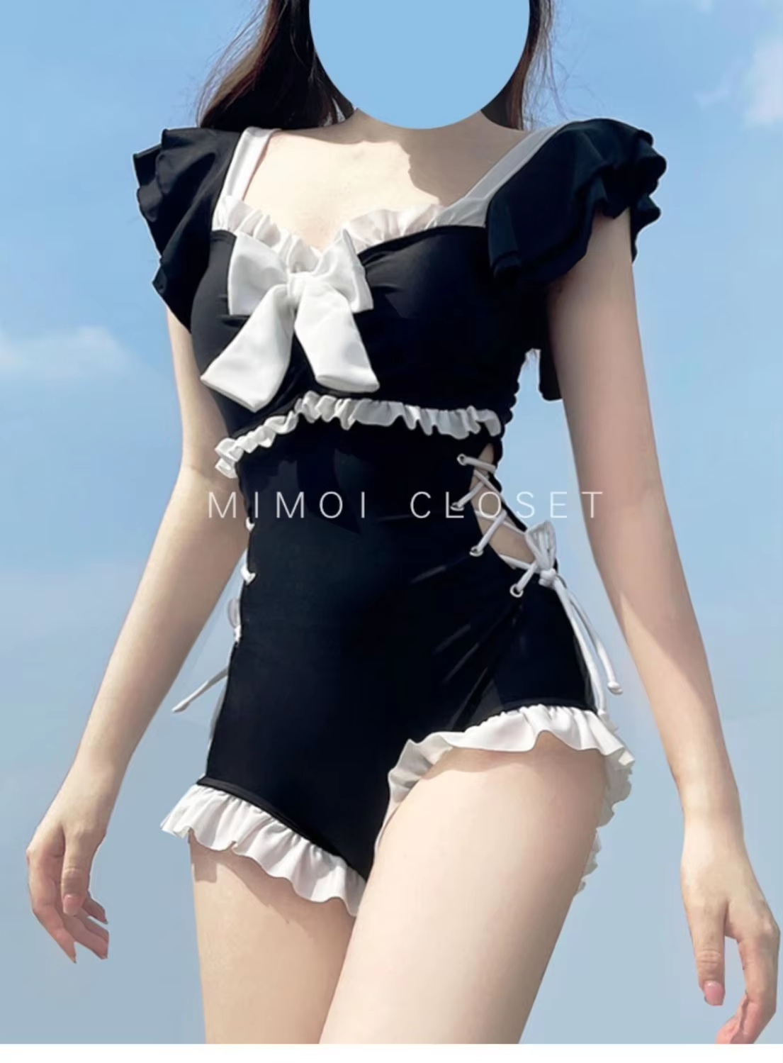 Summer Sexy Fashion Harajuku Bikinis Lady Kawaii Sweet Patchwork Women's Clothing Swimwear Sleeveless Bowknot Swimsuits Women