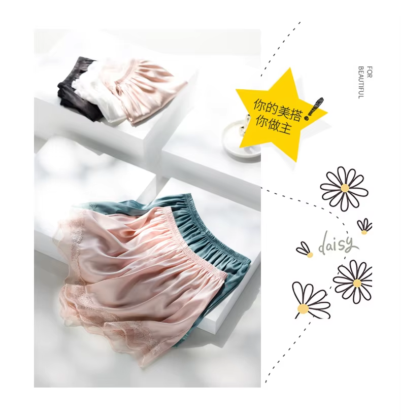Summer Silk Sleeping Shorts Female Sleep Bottoms Simple Home Safety Shorts Ladies Pajama Shorts Underwear Cool Comfortable