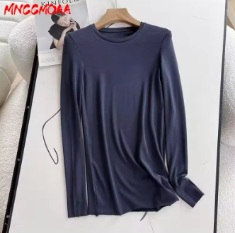 T Shirt Women 2024 Autumn Fashion Loose Round Collar Tops Female Solid Color Casual Long Sleeves Tee