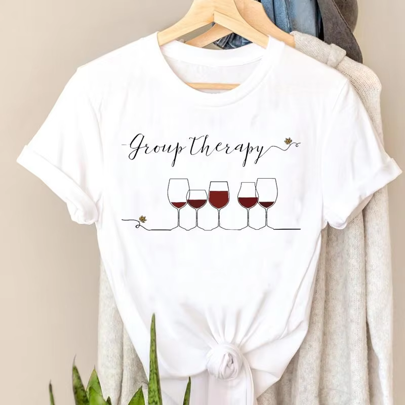 T-shirts Tee Fashion Trend Short Sleeve Women Ladies Tshirt Top Wine Style Trend Printing Lady Print Travel Graphic T-Shirt