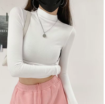 Turtleneck Long Sleeveless Women's T-shirt 2024 Spring New Fashion Crop Top Tees Y2K Tops Female Coquette Korean Popular Clothes