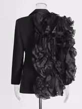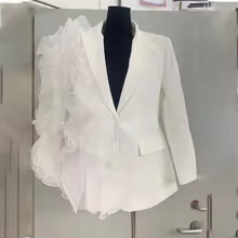TWOTWINSTYLE Patchwork Ruffles Chic Blazers For Women Notched Collar Long Sleeve Spliced Pocket Designer Blazer Female Fashion
