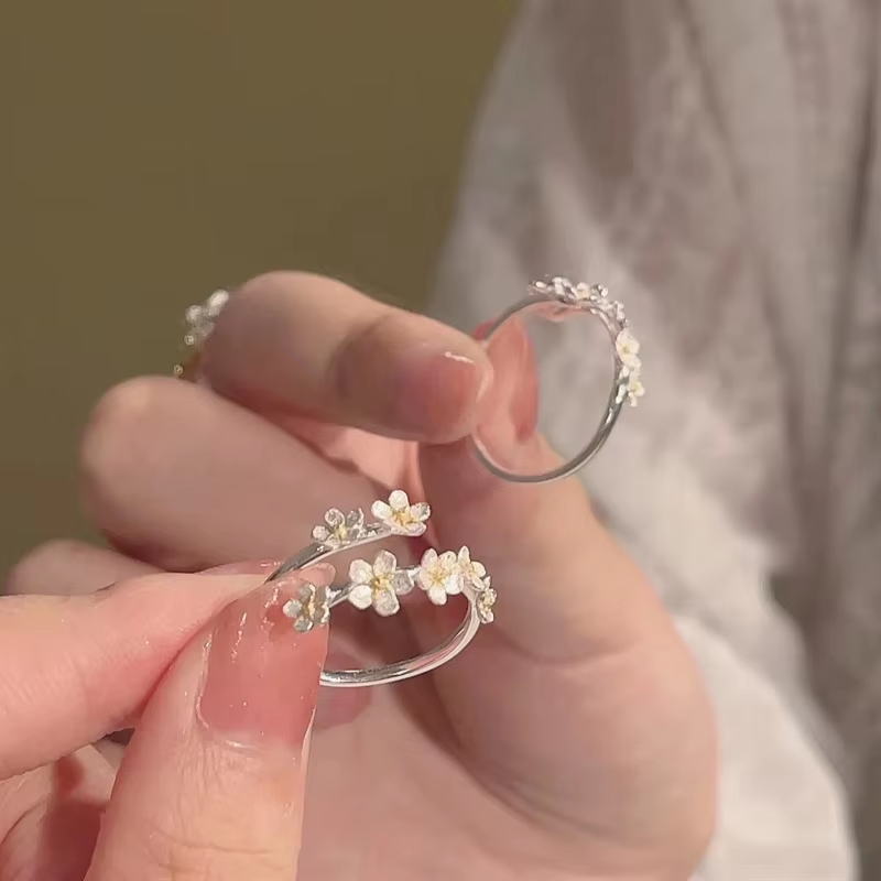 Unique Delicate Flowers Opening Adjustable Rings For Women Silver Color Minimalist Finger Ring Engagement Jewelry Female Gifts