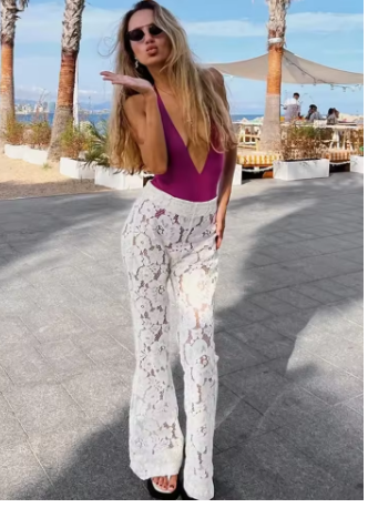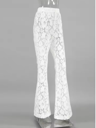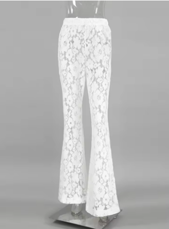 Wolfeel Sexy Perspective White Flare Pants Summer Women Vacation High Waist Long Trousers Lace Beach Style Female Pants 2025