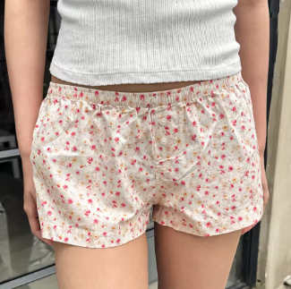 Y2K Kawaii Women Lounge Shorts Cute Boyshorts Panties for Women Floral Printing Front Button Sleepwear Pj Bottoms for Summer